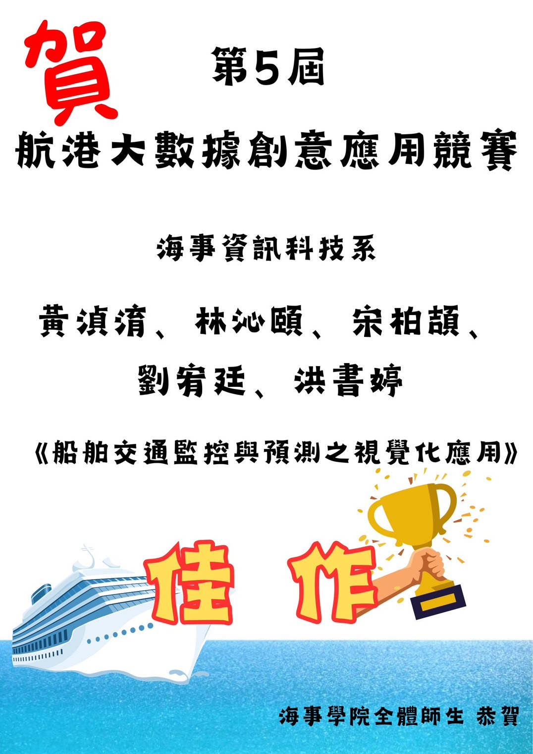 恭賀本院師生獲「交通部航港局第5屆航港大數據創意應用競賽-佳作 」!!!!!!!